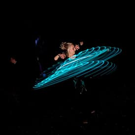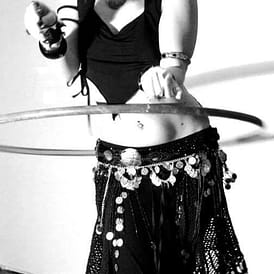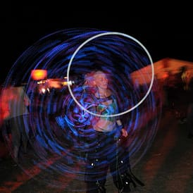 • selbstgenähter Kleidung und Hula Hoopreifen als Equipment