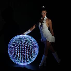 „RADIANT RINGS” ist die neue Action-geladene Leuchtreifen-Show von Spherina. Die farbenfrohen LED Hula Hoops werden in diesem Show Act mit beeindruckender Energie und Finesse durch die Luft geschwungen. Die leuchtenden Reifen schwingen mühelos um den Körper, dabei sorgen die LED Lichter für eine faszinierende visuelle Wirkung. Die Lichtreifen sind farblich perfekt zur Musik synchronisiert.